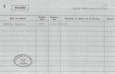 M. l’abbé Ernest Provost, curé de Notre Dame des Victoires de 1963 à 1969